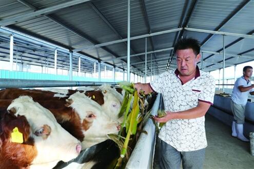 9月14日,圣水峪镇西仲都村党支部书记孔凡涛边喂新购进的小牛边观察它们的生长情况。该村为县农商行所包驻的第一书记村,他们在上届包村单位建设牛场的基础上,积极筹措资金新购进近百头优质品种肉牛。目前,泗水县市县包村部门紧紧围绕抓党建促脱贫的工作方针,充分发展部门优势,整合各方面资源,掀起投资金上项目热潮。