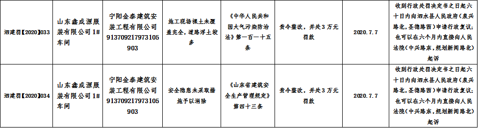 泗水县住建局行政处罚公示2020年7月