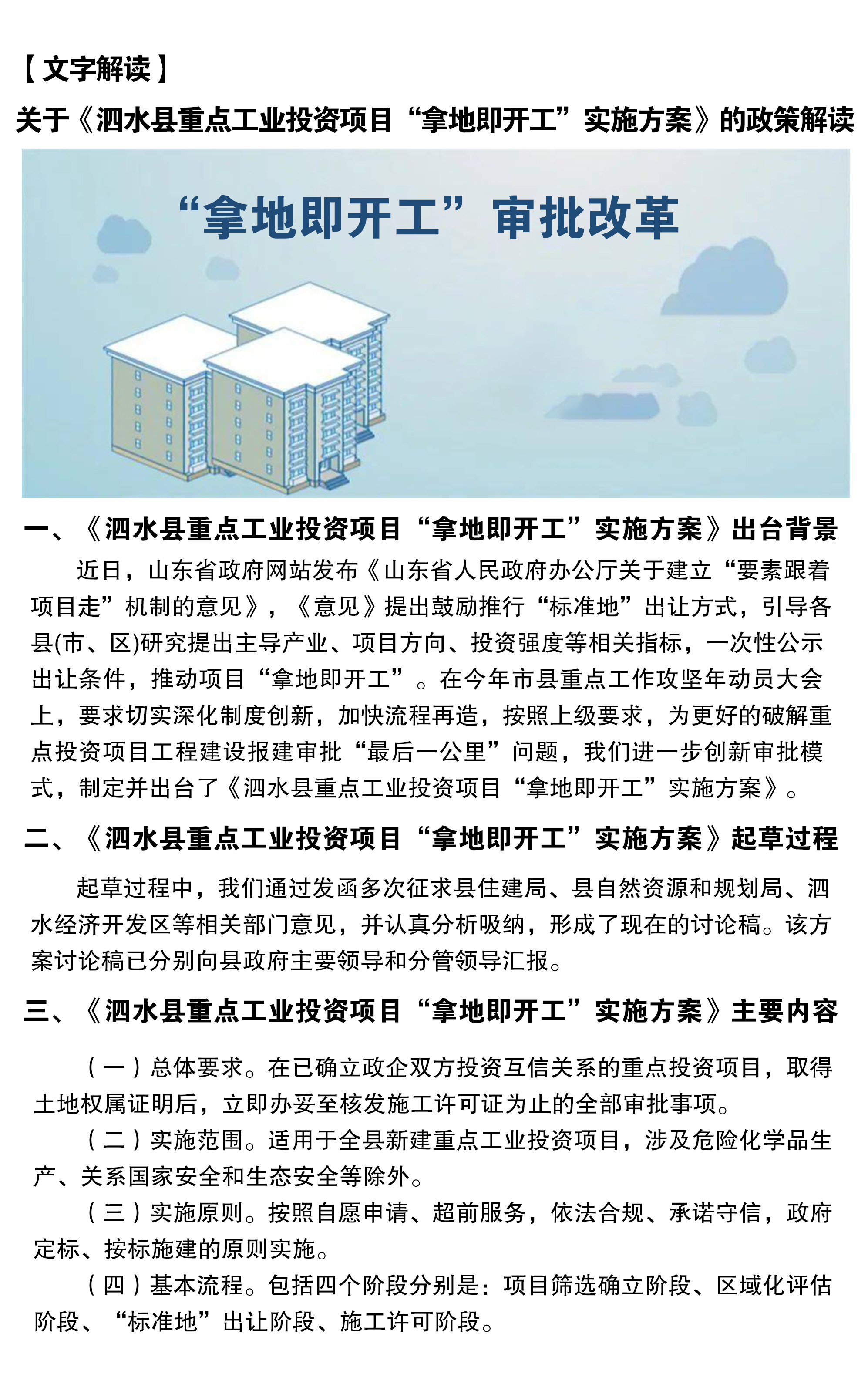 【图文解读】关于《泗水县重点工业投资项目“拿地即开工”实施方案》的政策解读