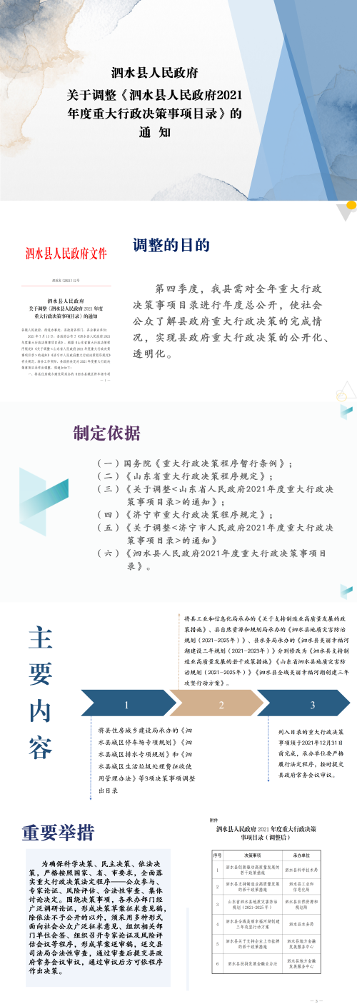 【图文解读】关于调整《泗水县人民政府2021年度重大行政决策事项目录》的通知(泗政发〔2021〕12号)解读材料