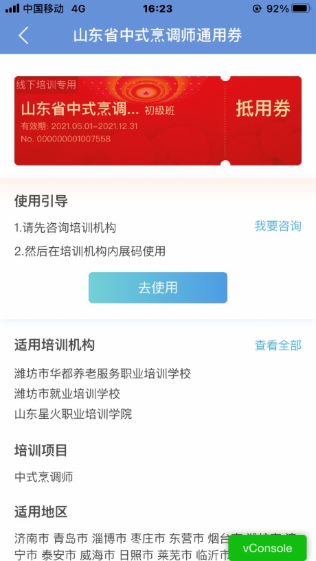 第四步:使用职业培训券:选择 扫码使用 或 自助使用