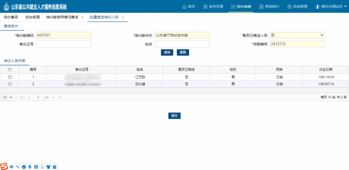通过省公共就业人才服务信息系统(以下简称省系统)向部平台推送发券人员名单。