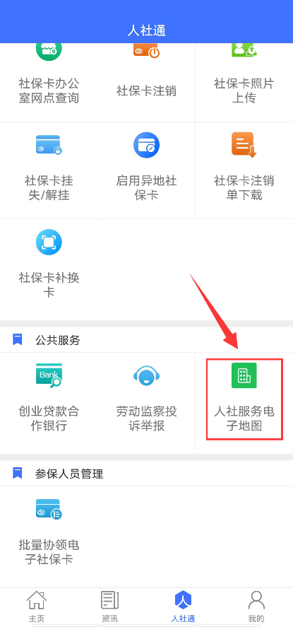 下载“济宁人社通”APP,在“公共服务”栏目中点击“人社服务电子地图”,在搜索栏中输入关键字,或者在下拉栏中选择地区,快速找到您要去的人社服务网点。