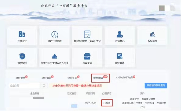 4.及时查看审核状态,材料显示“已办结”,即可换取新的营业执照。