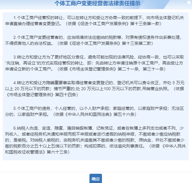 2.认真阅读个体工商户变更经营者法律责任提示。