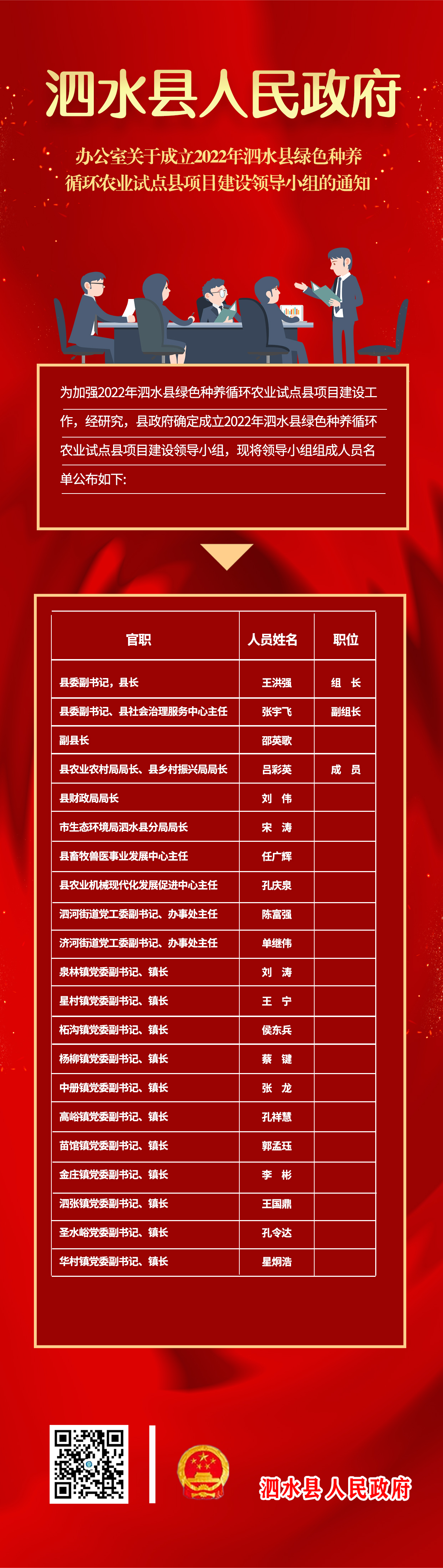 【图文解读】泗政办字〔2022〕44号泗水县人民政府办公室关于成立2022年泗水县绿色种养循环农业试点县项目建设领导小组的通知