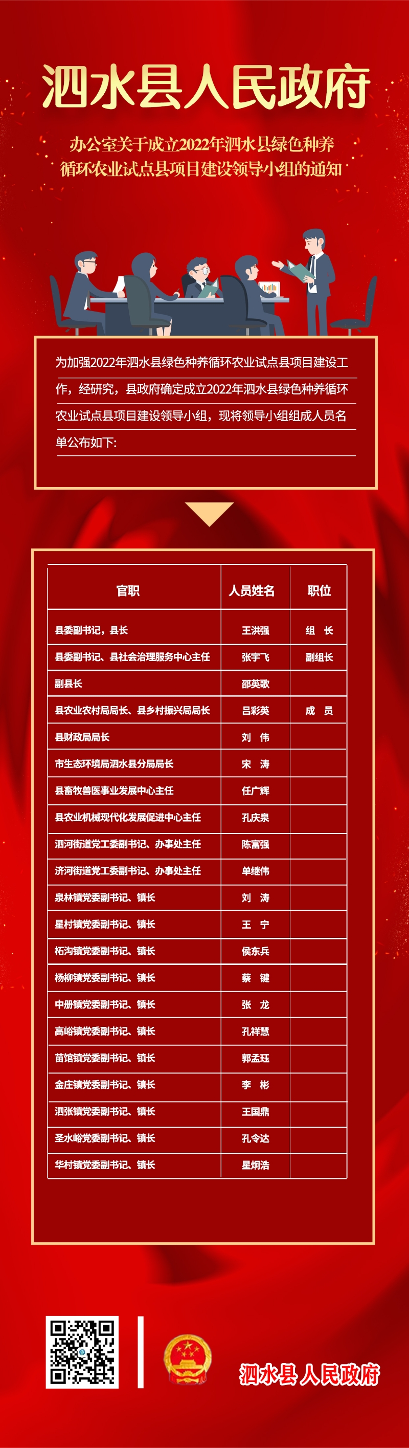 【文章链接】泗政办字〔2022〕44号泗水县人民政府办公室关于成立2022年泗水县绿色种养循环农业试点县项目建设领导小组的通知