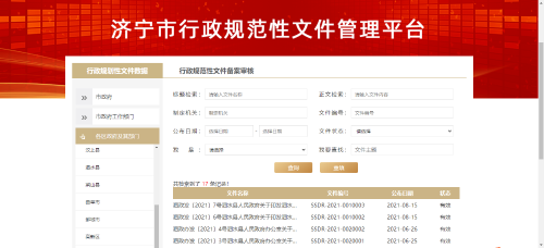 统一纳入“济宁市行政规范性文件管理平台”,进行一体式公开。