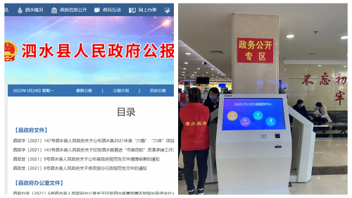 二是加大政府信息公开力度。2021年,泗水县政府门户网站共主动公开各类政府信息6629条,其中,规范性文件5件,政府常务会议22次,政府大事记12条;公开机构职能、公务员招录、政府集中采购等基础信息235条,财政预决算、“三公”经费和财政专项经费管理信息180条,乡村振兴信息44条,义务教育信息75条,社会救助、福利信息182条,政府工作报告、重点领域信息、法定主动公开内容等其他信息5900余条。