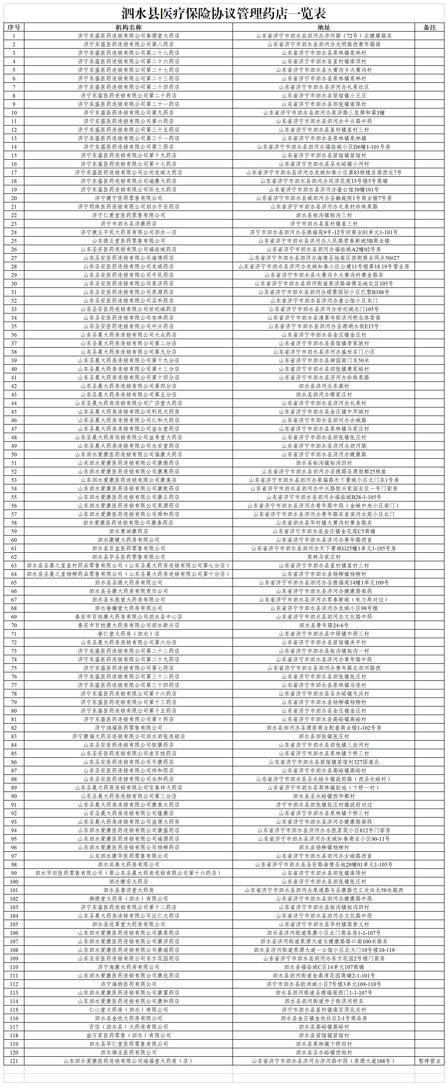 泗水县医保定点药店一览表