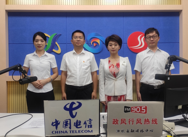 主持人:【欢迎回来,您现在关注的是泗水县融媒体中心泗水广播电视台正在直播的政风行风热线节目,我是节目主持人徐红。今天上线的嘉宾单位是中国电信泗水分公司带队走进直播间的是中国电信泗水分公司副总经理郑文哲,同时来到直播间的嘉宾还有:泗水电信营业厅店长乔琳琳,