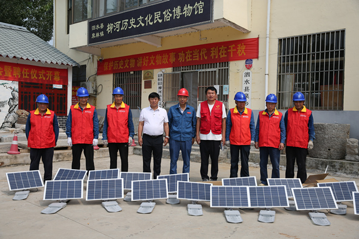 因为安装路灯需要特殊设备和人力,泗水县供电公司抽调泉林供电所、苗馆供电所志愿服务成员9名与5名泉乡义工志愿者一起为柳河峪村公益路灯的进行了安装。经过志愿者一天的紧张施工,累计为柳河峪村群众安装完成高标准太阳能路灯24盏、维修更换灯泡20盏,基本覆盖了全部村内道路。