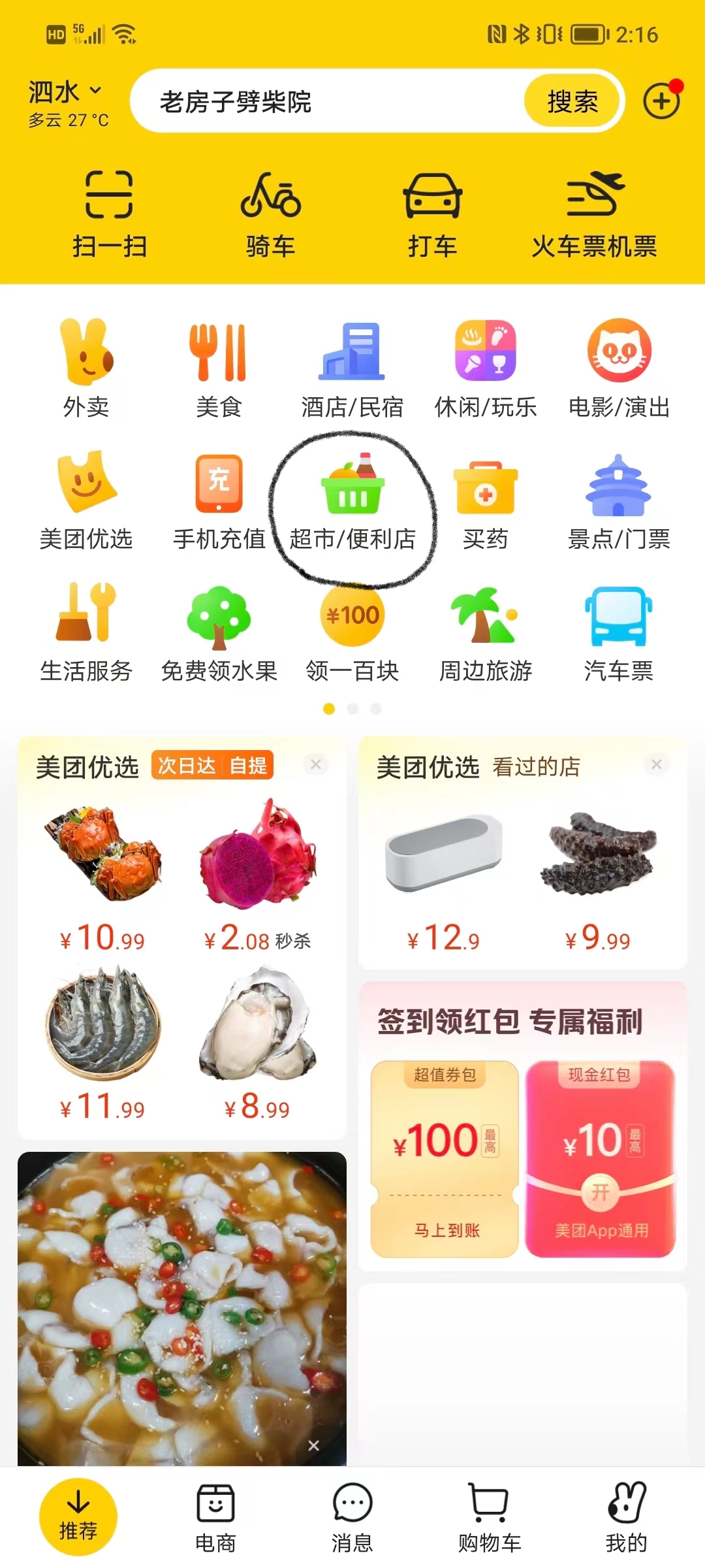 进入方式:美团首页或微信美团优选小程序点击超市/便利店