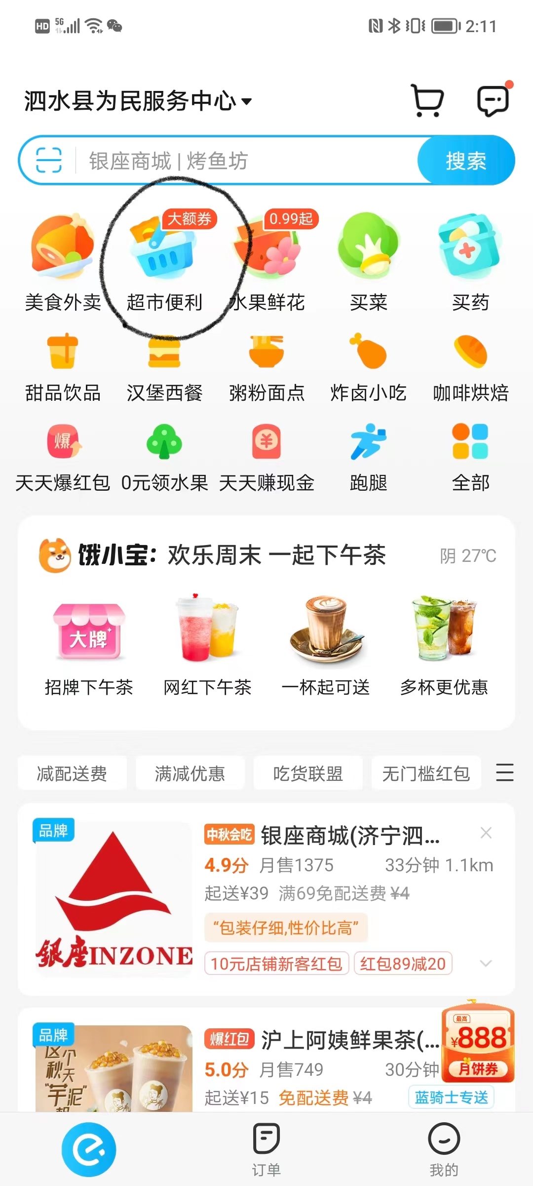 进入方式:饿了么首页点击 超市/便利店