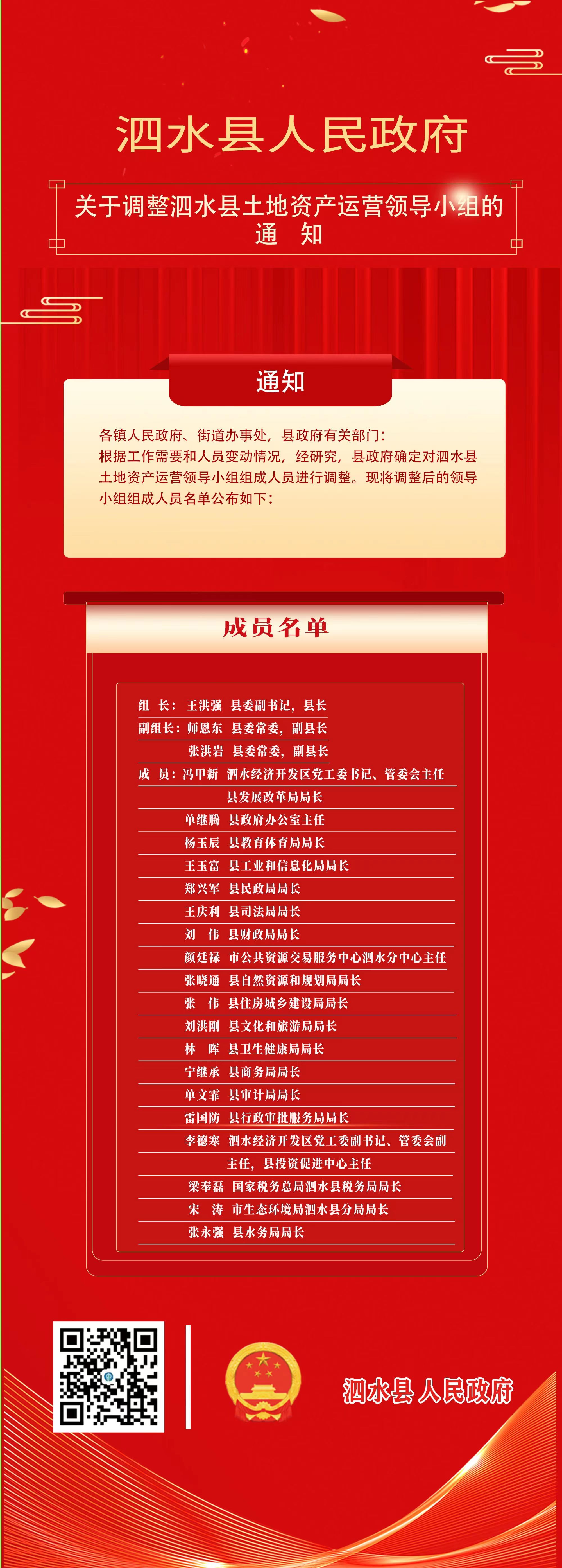【图文解读】泗政办字〔2023〕25号泗水县人民政府办公室关于调整泗水县土地资产运营领导小组的通知