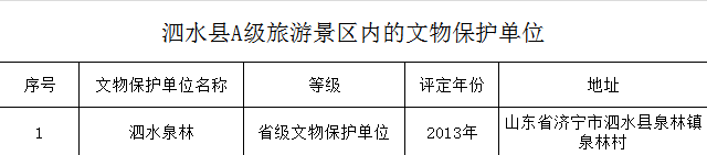 泗水县A级旅游景区内的文物保护单位