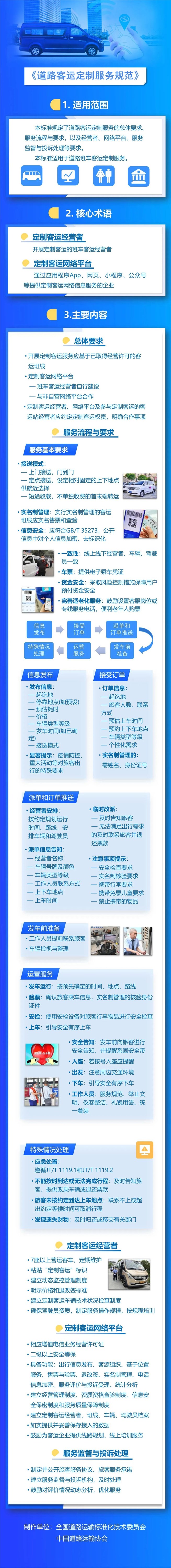 今年6月25日,交通运输部发布《道路客运定制服务规范》(标准编号:JT/T 1470—2023),并于9月25日起实施。这一标准主要用于指导道路客运企业、网络平台和相关服务人员开展定制客运服务,提升运营服务水平,为行业主管部门强化事中事后监管提供参考依据,将有效推动定制客运规范化、高质量发展。