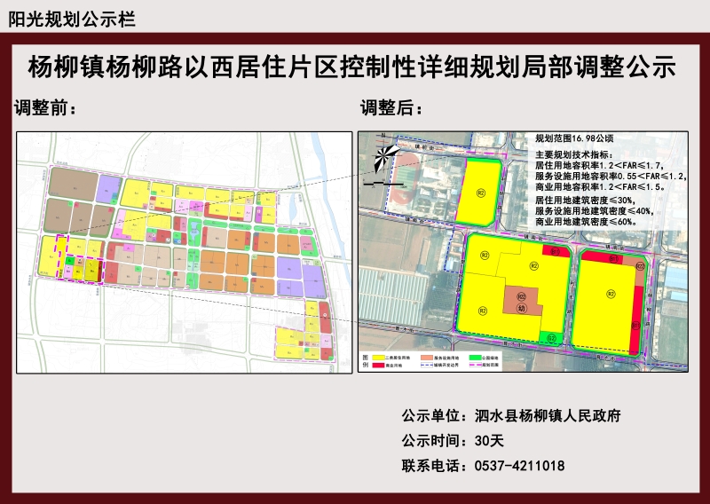 杨柳镇杨柳路以西居住片区控制性详细规划局部调整公示