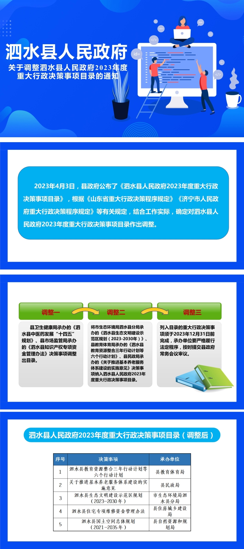 【图文解读】泗政发〔2023〕13号泗水县人民政府关于调整泗水县人民政府2023年度重大行政决策事项目录的通知