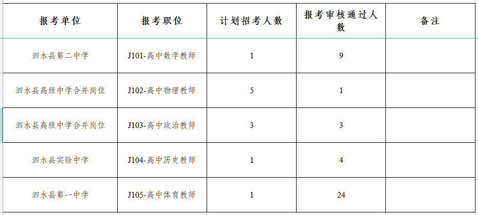 2024年泗水县教育类事业单位公开招聘工作人员(第二批)报名情况统计(截止到2024年10月15日17:00)
