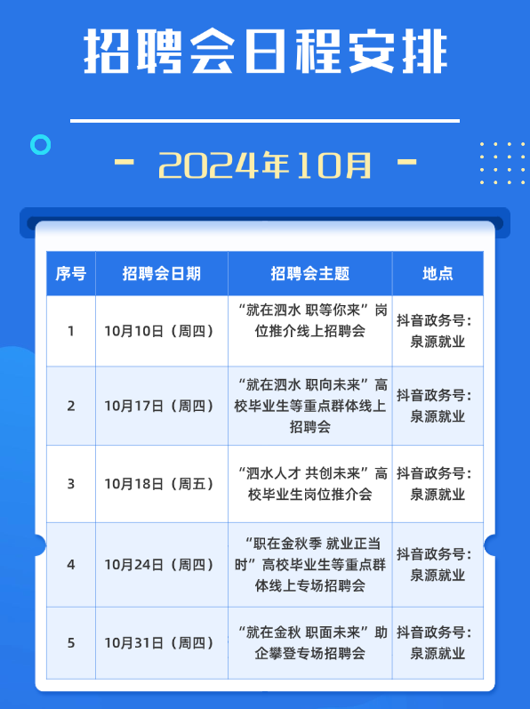 【职业指导进招聘会】泗水县2024年10月份职业指导服务时间表发布!