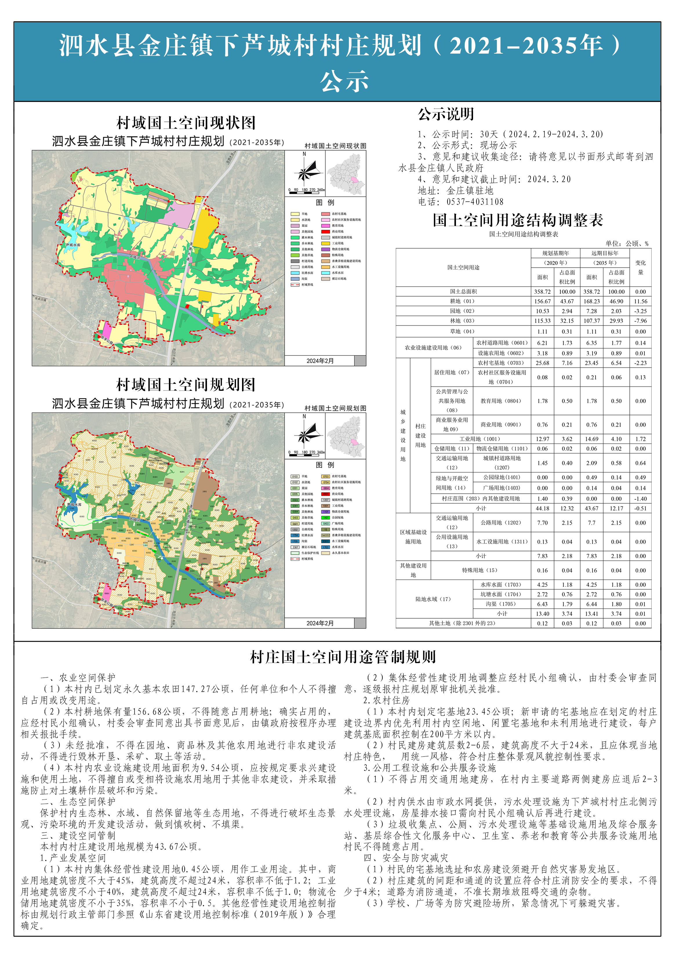 泗水县金庄镇下芦城村村庄规划(2021-2035年)公示