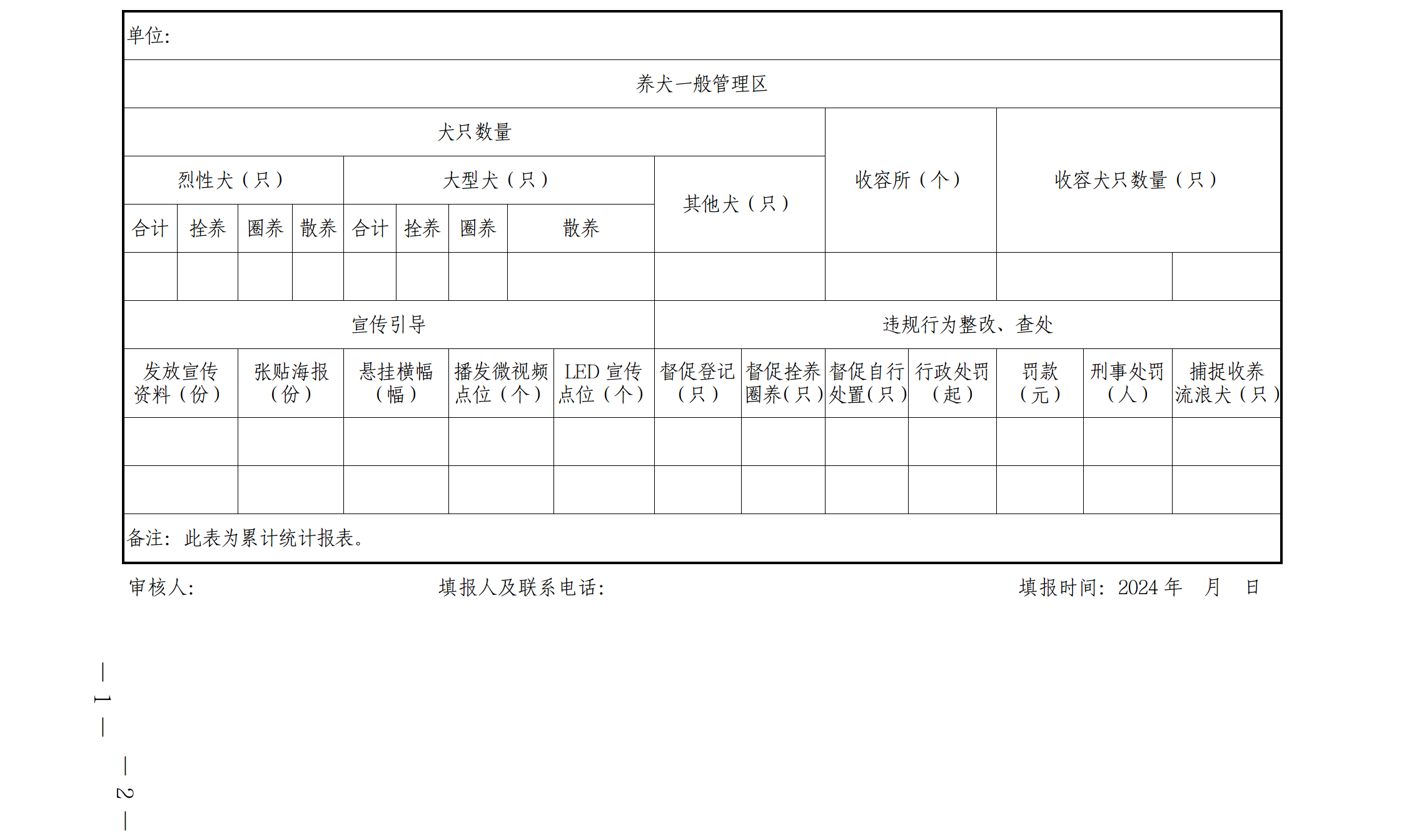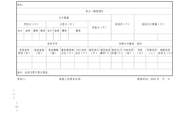 2.全县养犬管理集中整治统计表