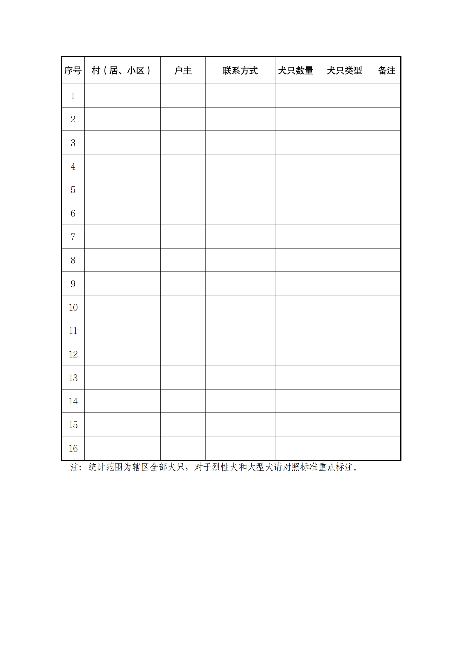 3.泗水县镇(街道)犬只情况摸排统计表