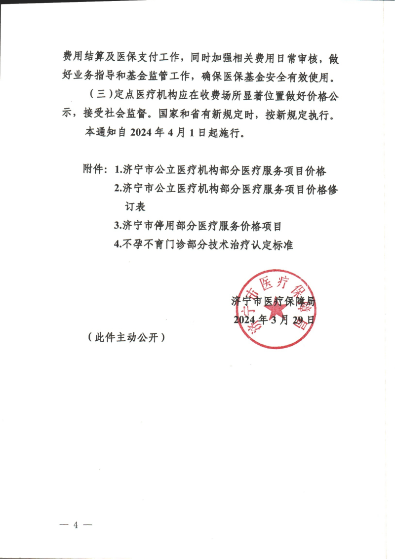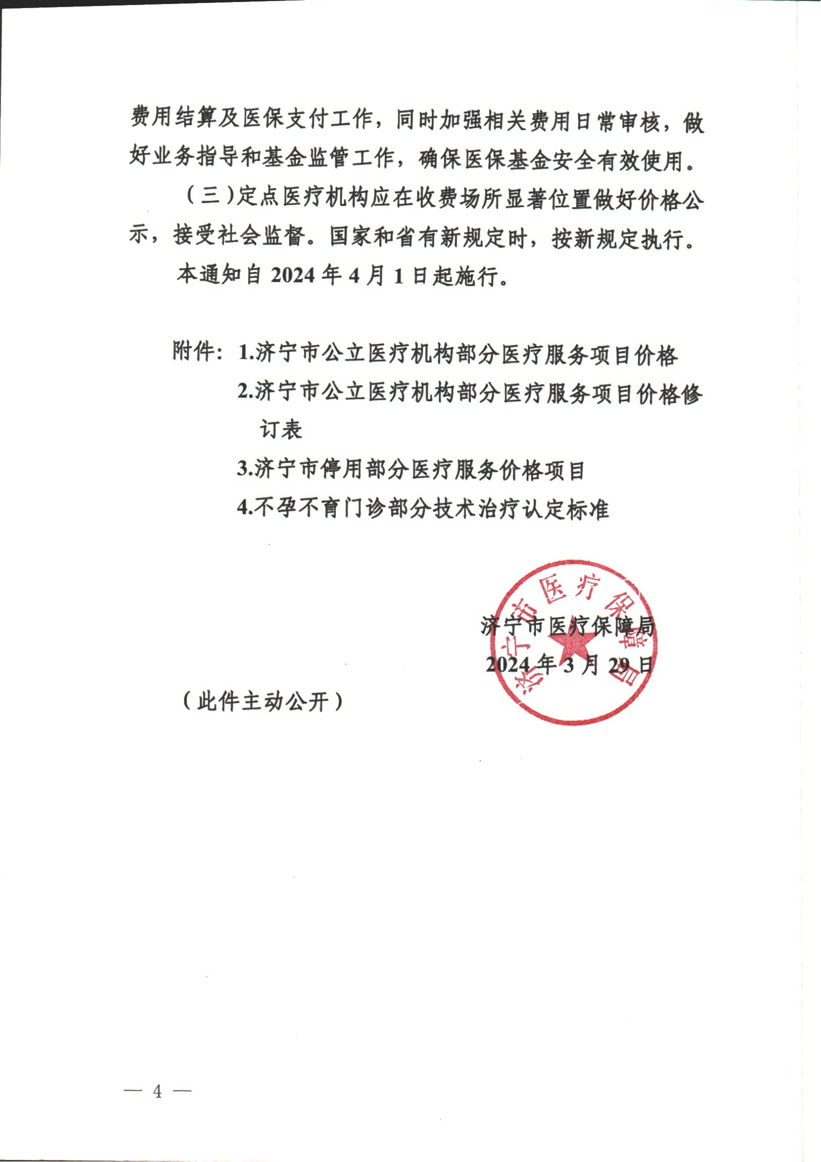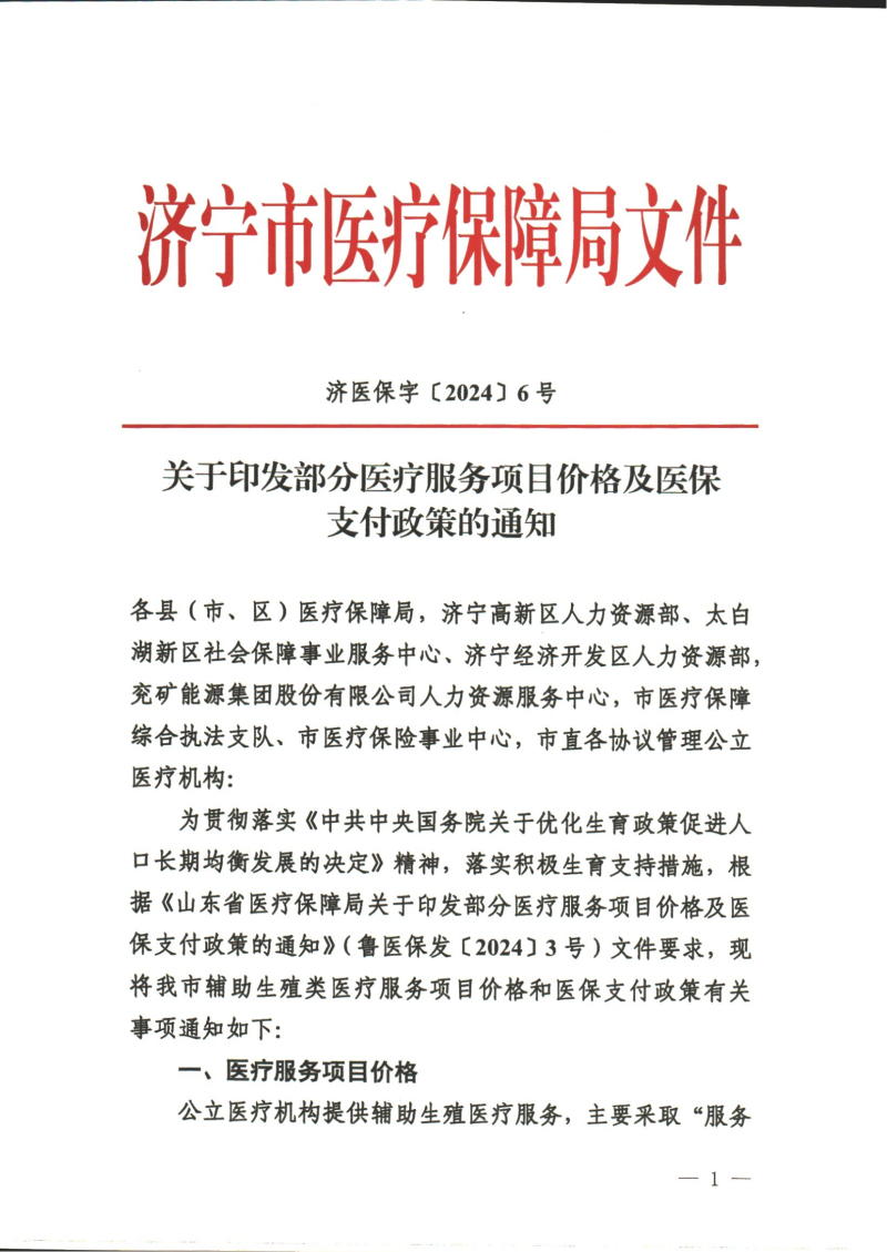 现将济宁市医疗保障局下发的《关于印发部分医疗服务项目价格及医保支付政策的通知》的通知(济医保字〔2024〕6号)转发给你们,请根据通知要求,遵照执行。