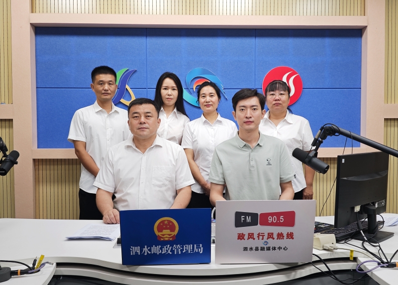 王局长(带队领导):【各位听众朋友,观众朋友 大家好!很荣幸参加泗水融媒体中心的《政风行风热线》节目,首先,我谨代表泗水邮政管理局对长期关心、支持我县邮政快递事业发展的社会各界朋友表示衷心的感谢,同时也感谢《政风行风热线》栏目为我们搭建了同社会各界沟通交流的桥梁,这将对我们持续改进邮政监管工作作风、促进邮政快递业高质量发展发挥重要的作用。也借此机会,希望广大听众朋友们一如既往地关心支持邮政快递工作,并对我们的工作积极建言献策,多提宝贵意见,对各位朋友的提问,我和我的同事,将认真负责地逐一解答、解决。】