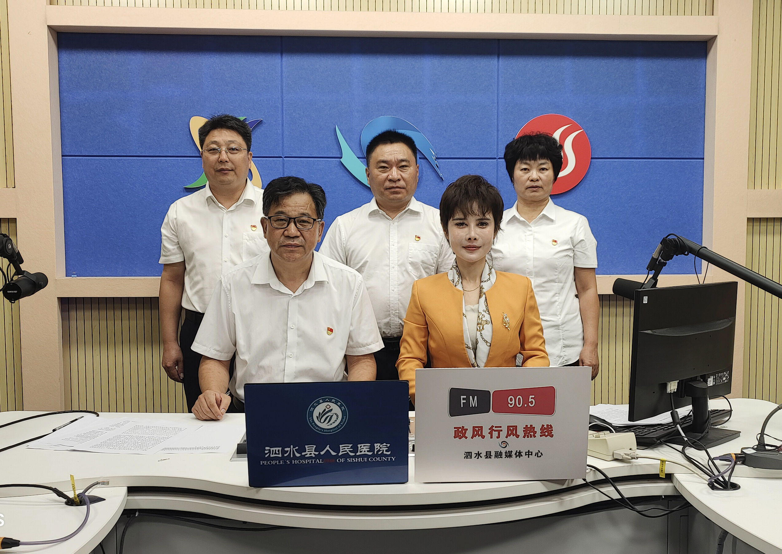 主持人:【“倾听百姓心声,接受群众监督”,收音机前的听众朋友以及电视机前的观众朋友们,大家好,欢迎您关注泗水县融媒体中心泗水广播电视台正在直播的《政风行风热线》节目,我是节目主持人宋晨。今天上线的嘉宾单位是泗水县人民医院,带队走进直播间的是县人民医院党委书记孙庆才。如果您在关注我们节目的过程中,有关于县人民医院看病就医方面的相关问题需要咨询、反映,或者对医院发展建设什么好的意见和建议,欢迎您拨打我们栏目的热线电话4321123,4231711参与节目互动,另外您也可以通过手机微信,搜索“泗水融媒公众号”,关注我们节目的微信平台,给我们进行留言互动。现在坐在我身边的就是县人民医院党委书记孙庆才,孙书记,您好,欢迎您再次来到我们的直播间做客我们的节目,先给大家打个招呼吧。】