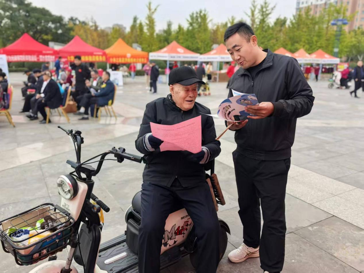 在政策宣传环节,县民政局坚持“实打实”为民服务导向,做足前期筹备工作。针对群众高度关注的养老领域重点政策,精心梳理汇编了经济困难老年人补助、高龄老年人生活补贴、养老服务机构运营扶持等惠民政策资料,同时结合当前养老领域诈骗高发态势,专门制作了防诈骗宣传手册、警示海报等宣传材料,在活动现场通过设立宣传展板、发放资料手册等形式,向过往群众全面普及相关政策知识和防诈技巧。为确保政策解读精准易懂,活动专门安排业务骨干组成咨询服务小组,采取“面对面解读+现场答疑解惑”的模式,对群众关心的政策适用条件、申请流程、补贴标准等关键问题进行详细讲解,对群众提出的个性化诉求逐一进行耐心回应,切实打通政策宣传“最后一公里”,让群众听得懂、用得上、能受益。