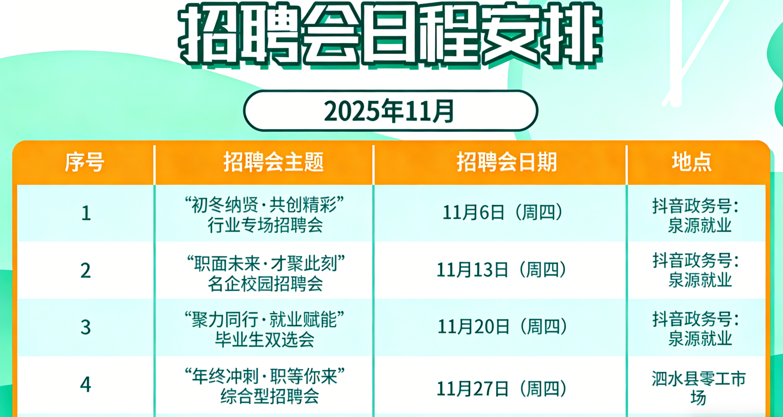 【职业指导进招聘会】泗水县2025年11月份职业指导服务时间表发布!