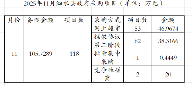 2025年11月泗水县政府采购项目(单位:万元)