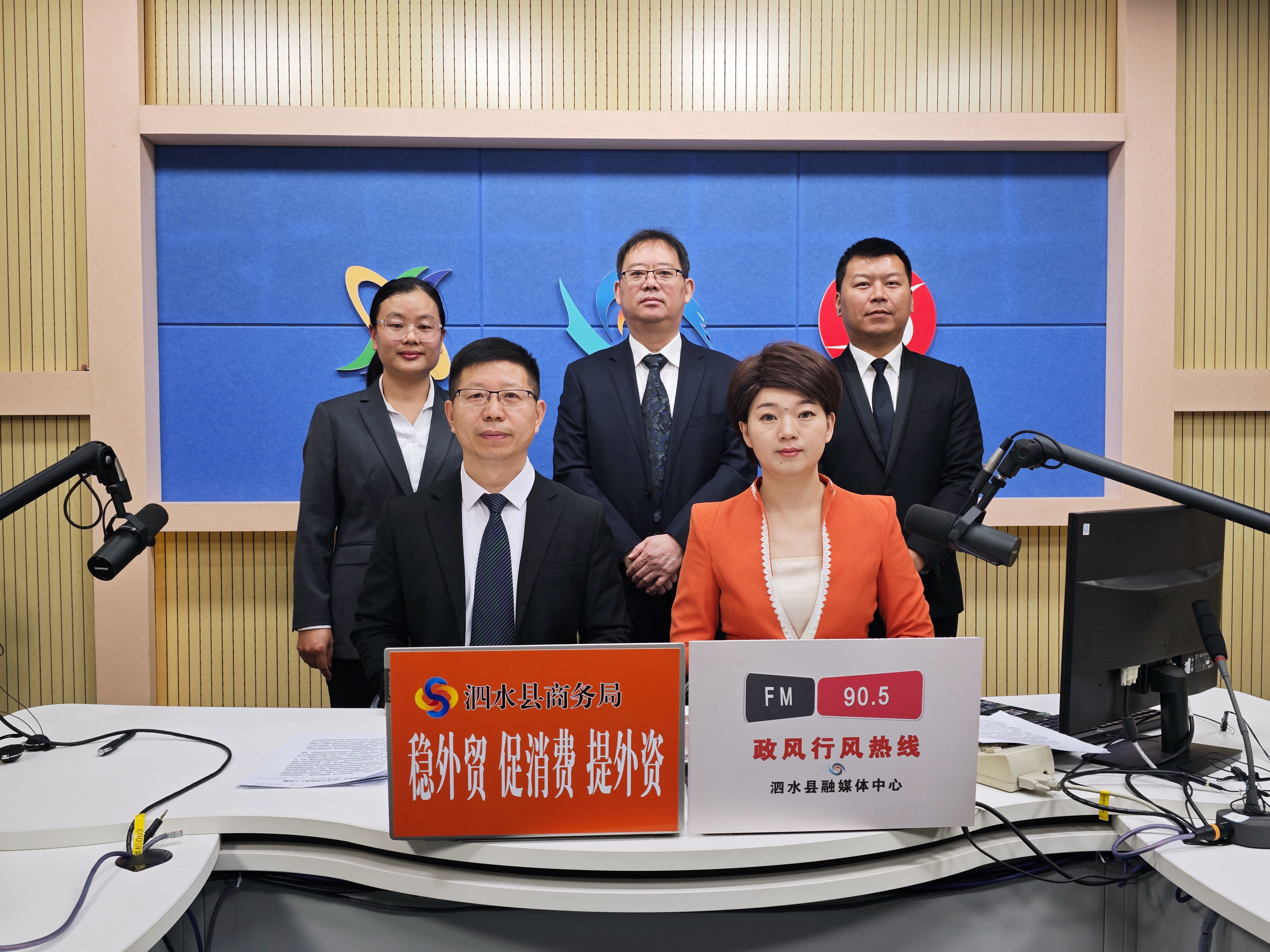 主持人:【“倾听百姓心声,接受群众监督”,收音机前的听众朋友以及电视机前的观众朋友,大家好,您现在关注的是泗水县融媒体中心,泗水广播电视台的《政风行风热线》节目,我是节目主持人徐宏,今天上线的嘉宾单位是县商务局,带队走进直播间的是县商务局局长马兆国;如果您在关注我们节目的过程中,有关于县商务局的相关问题需要咨询或者反映,欢迎您积极拨打我们栏目的热线电话4321123和4231711,说出您的诉求。另外,您也可以通过手机微信,搜索“泗水融媒微信公众号”,关注我们节目的微信平台,给我们留言。现在坐在我身边的这位就是县商务局局长马兆国。您好,马局长,欢迎您来到我们节目当中,下面先跟大家打个招呼吧。】