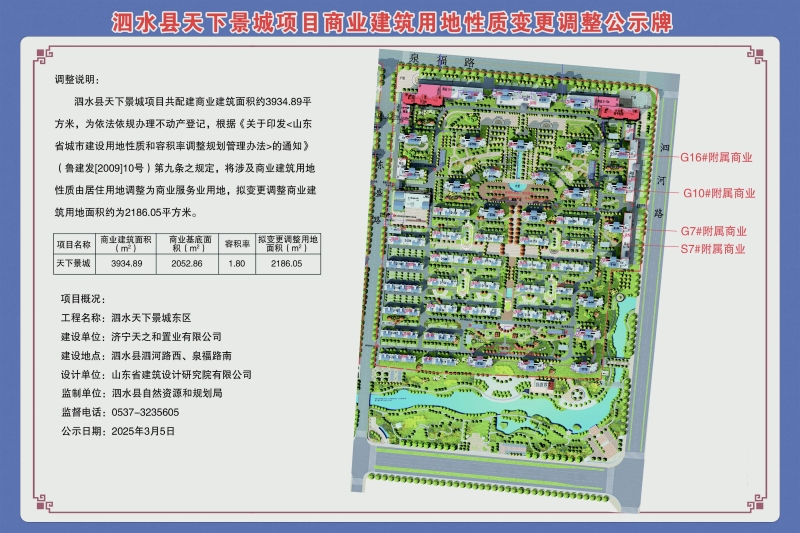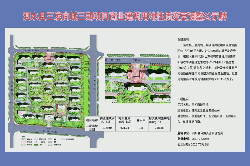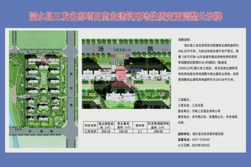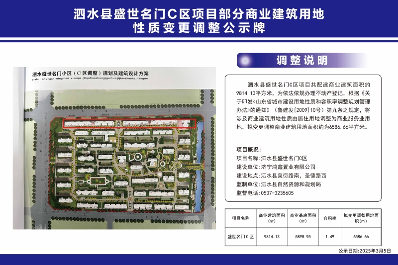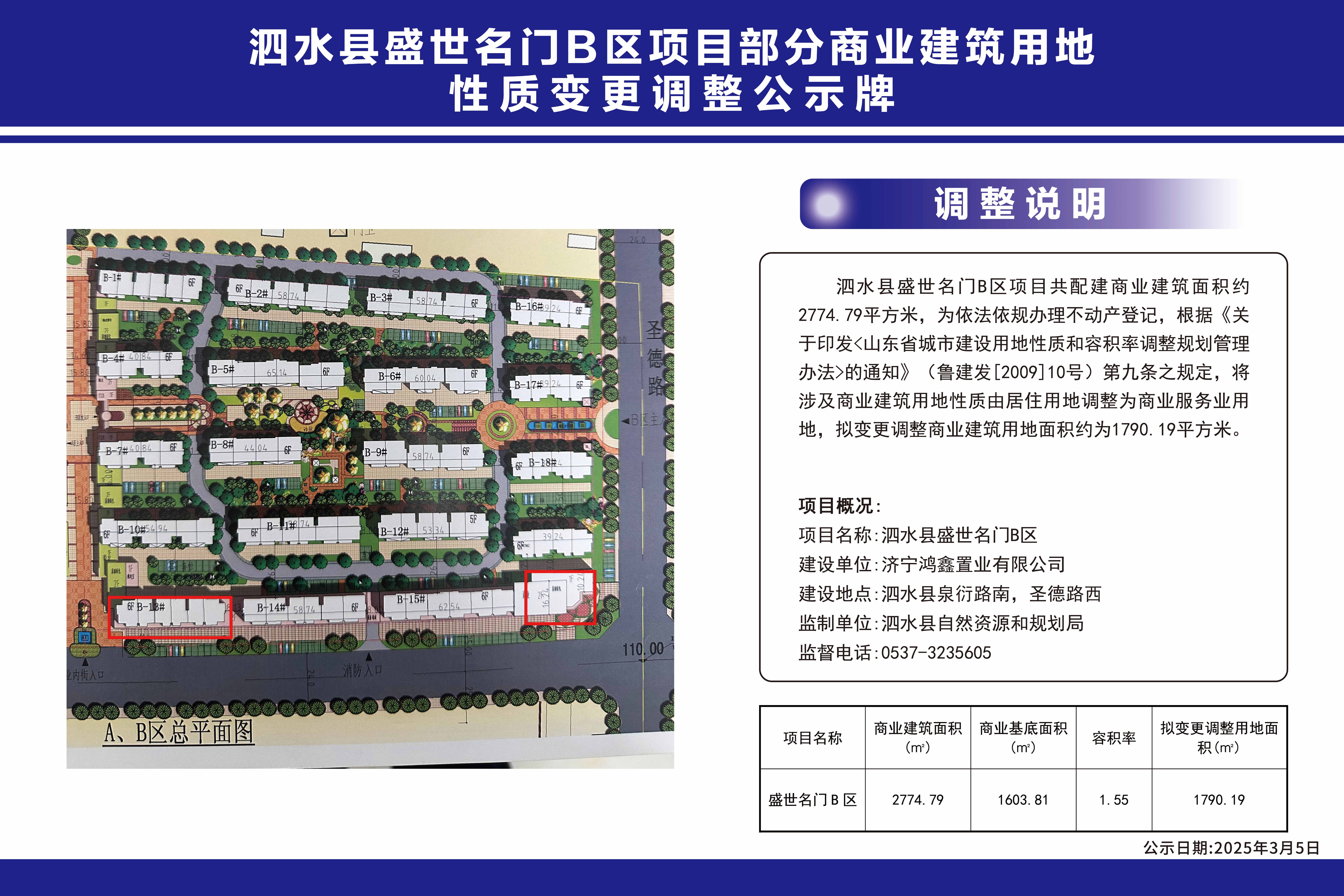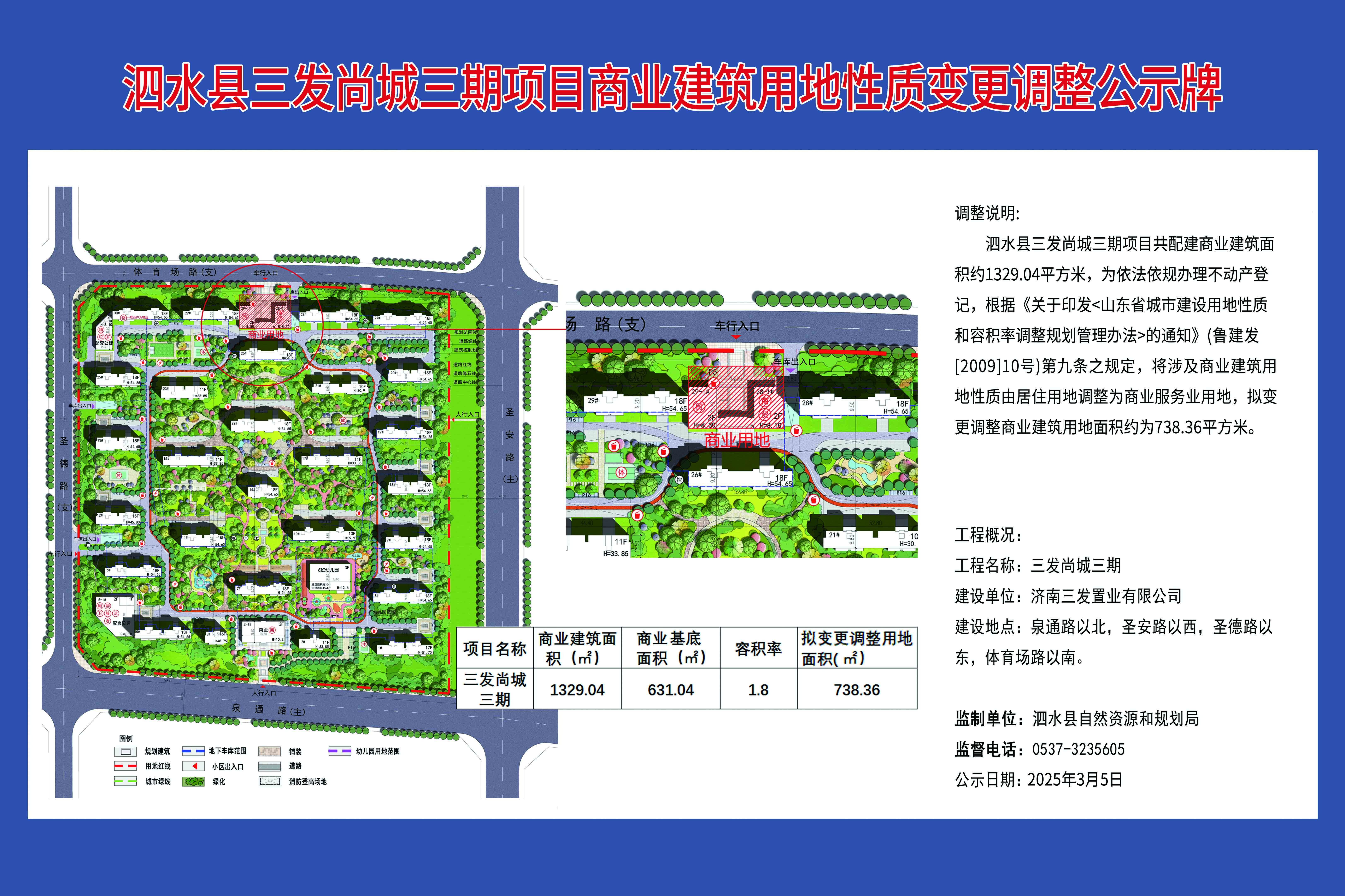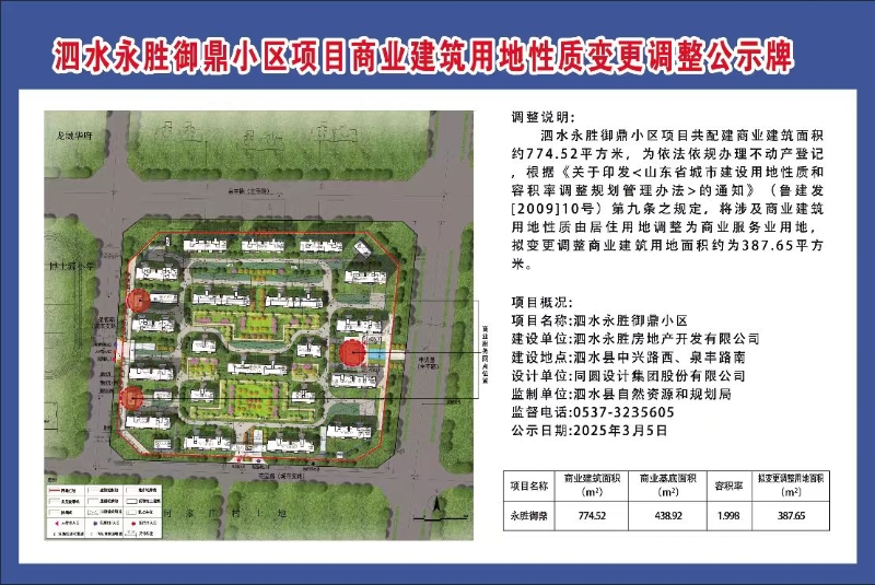 泗水县部分住宅小区内商业建筑用地性质变更公示