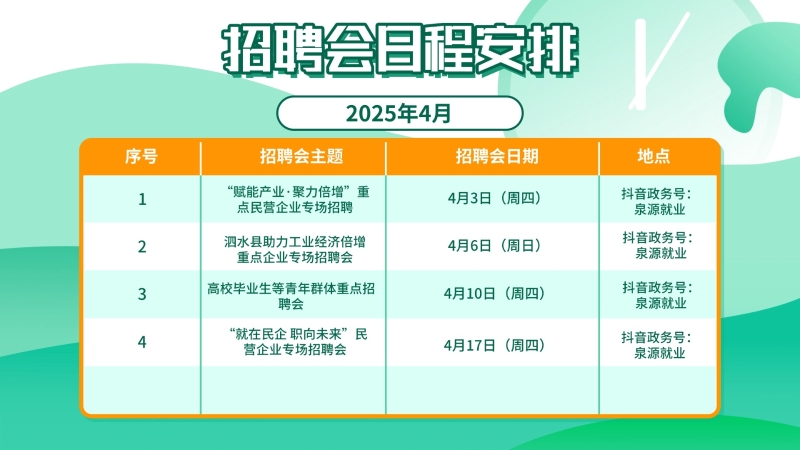 【职业指导进招聘会】泗水县2025年4月份职业指导服务时间表发布!