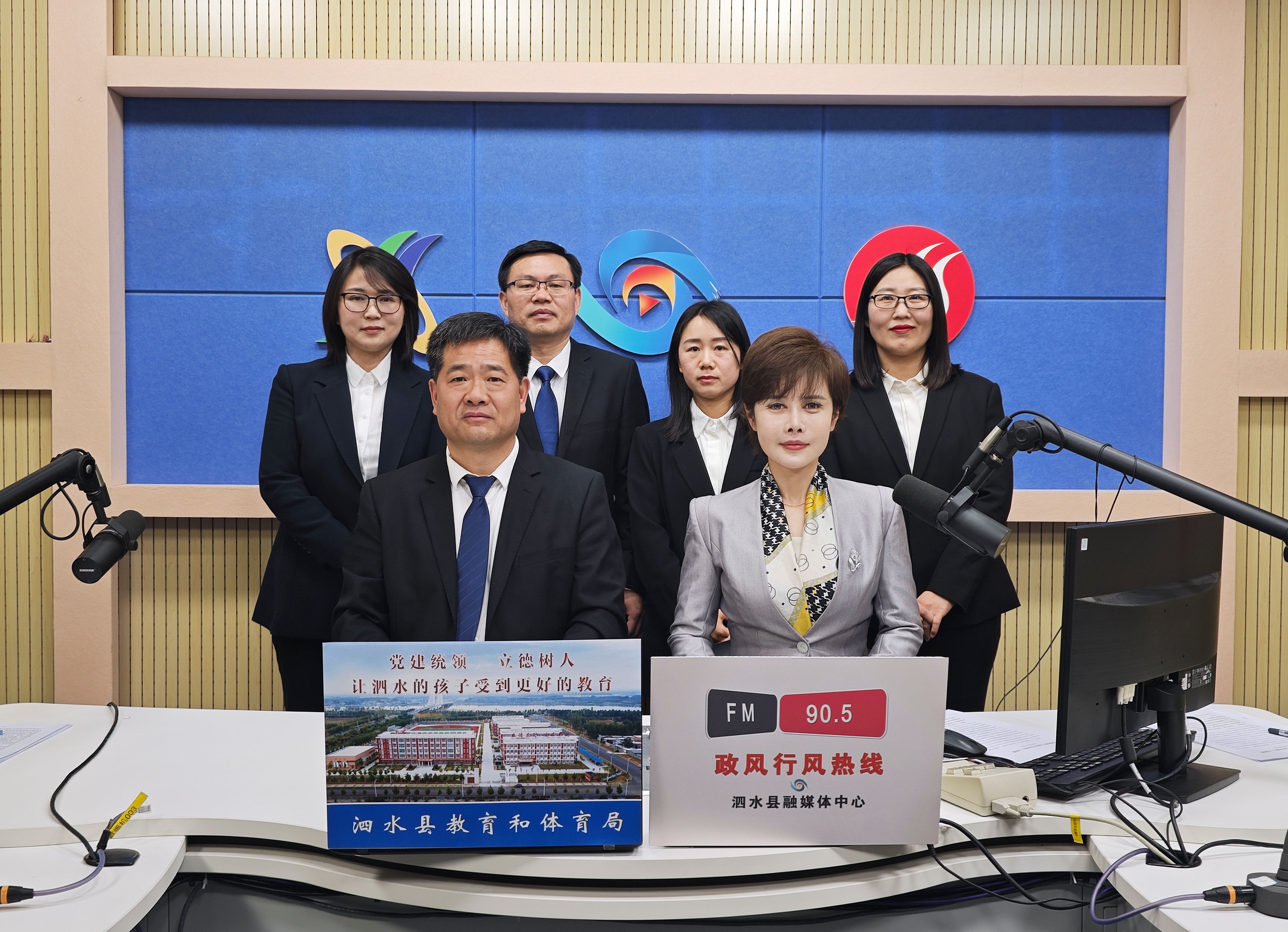欢迎回来,听众朋友,您现在关注的是泗水县融媒体中心泗水广播电视台正在直播的《政风行风热线》节目,我是节目主持人宋晨,今天上线的嘉宾单位是县教育和体育局,带队走进直播间的是县教育和体育局党组书记、局长李庆泉。同时来到直播间的嘉宾还有: