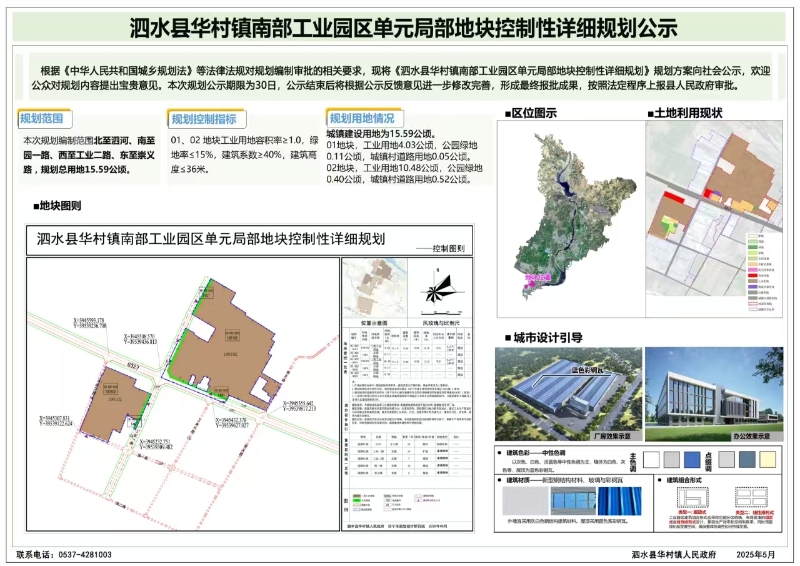 泗水县华村镇南部工业园区单元局部地块控制性详细规划公示