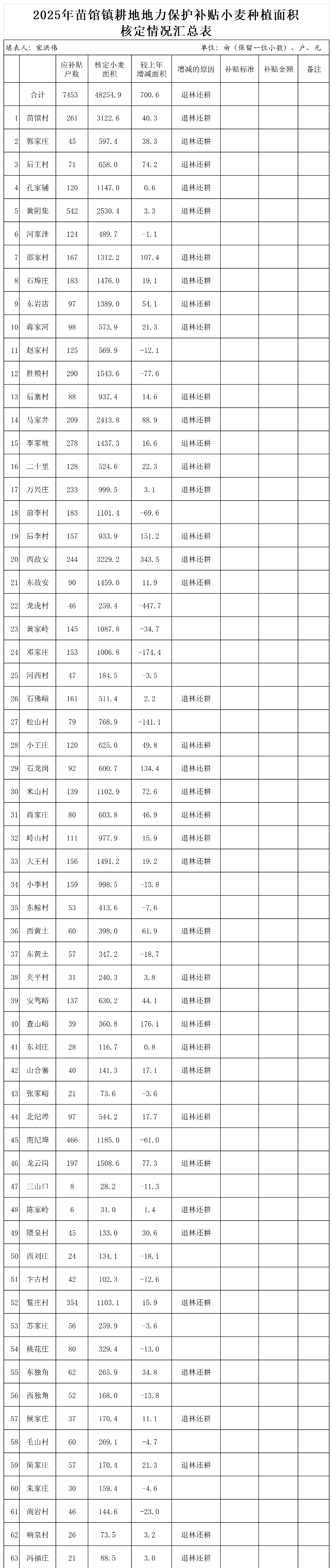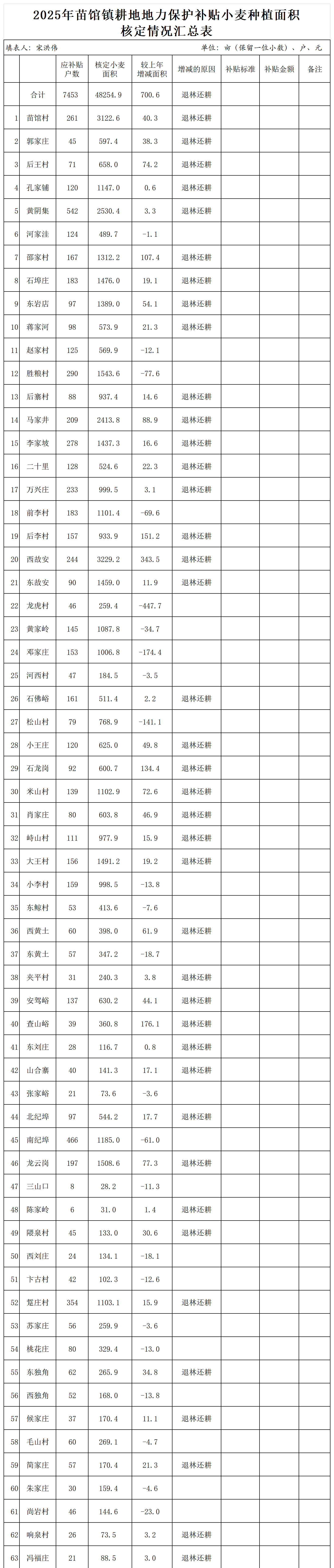 苗馆镇2025年小麦补贴项目核定种植面积公示