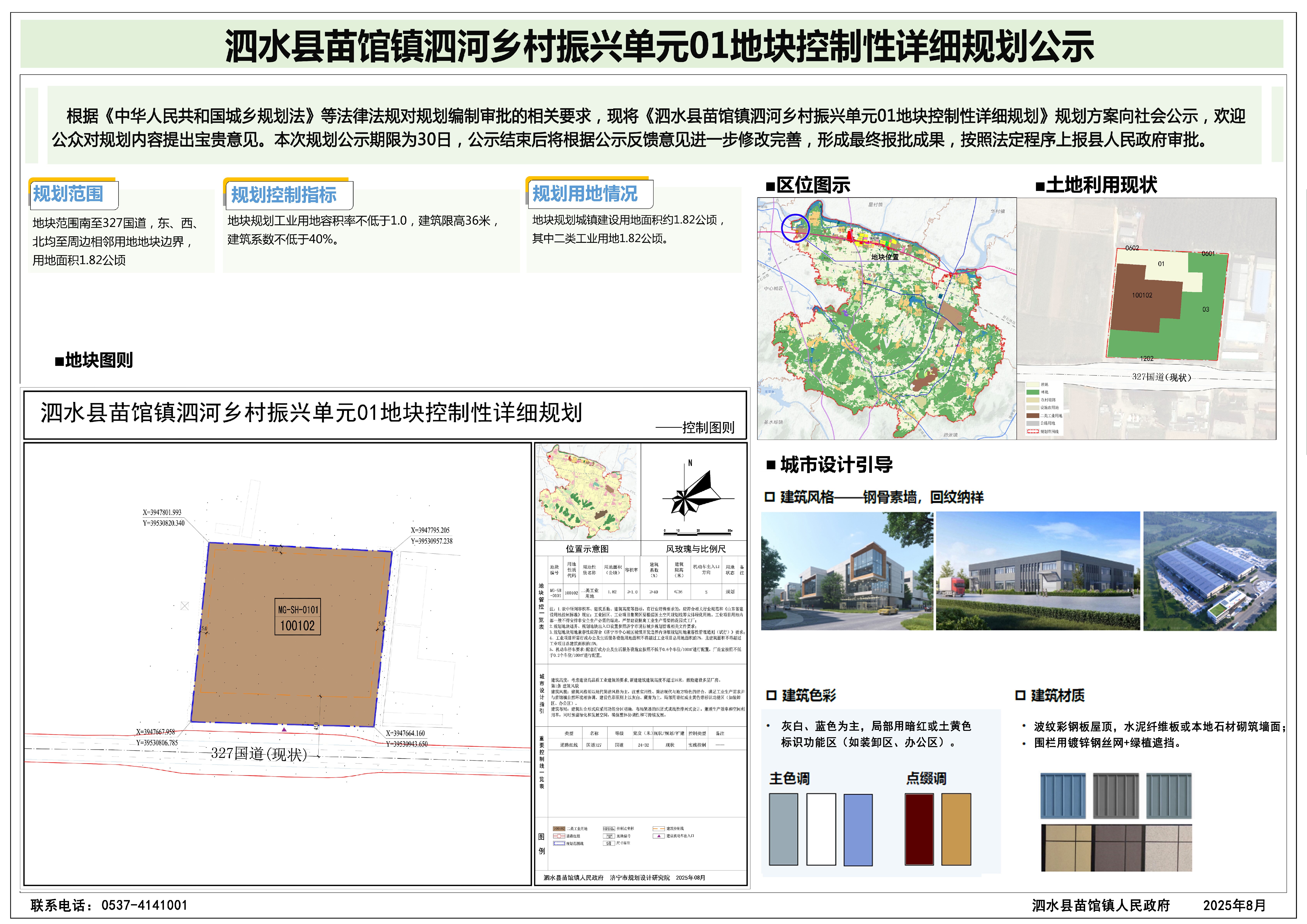 泗水县苗馆镇泗河乡村振兴单元01地块控制性详细规划公示