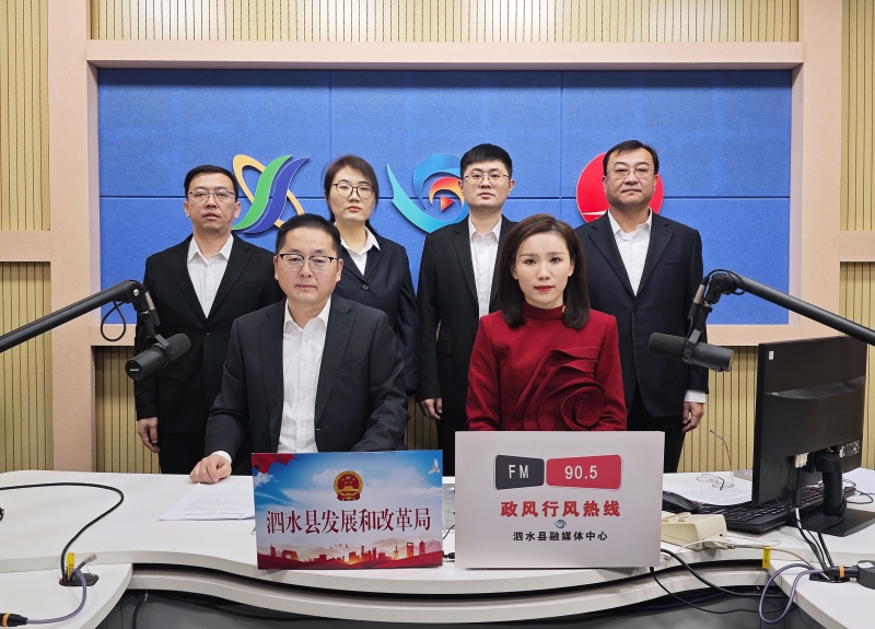 主持人:【欢迎回来,这里是泗水县融媒体中心综合广播正在直播的《政风行风热线》节目。我是节目主持人杨雪,今天上线的嘉宾单位是县发展改革局,带队走进直播间的是县发展改革局党组书记、局长刘洪刚;同时做客直播间的嘉宾还有: