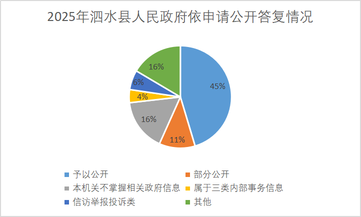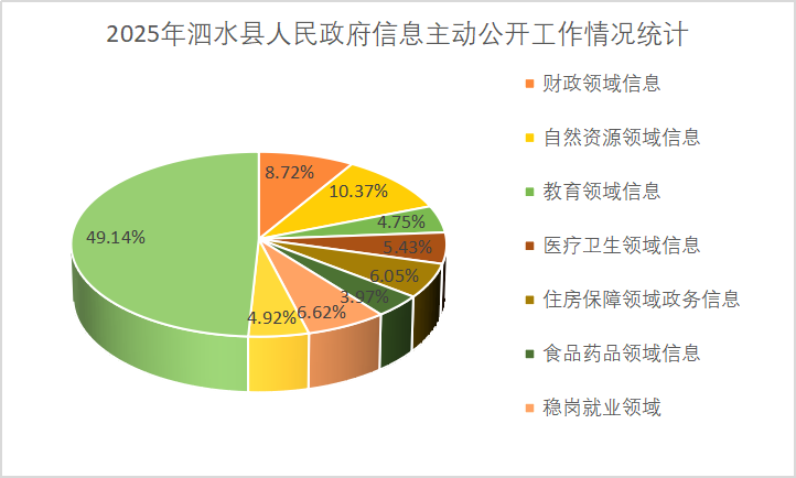 2025年,泗水县人民政府以习近平新时代中国特色社会主义思想为指导,严格执行《中华人民共和国政府信息公开条例》,认真履行政府信息公开工作职责,坚持为全县中心工作服务。