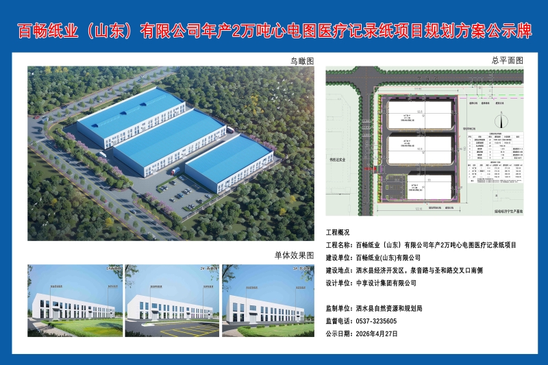 百畅纸业(山东)有限公司年产2万吨心电图医疗记录纸项目规划方案批前公告