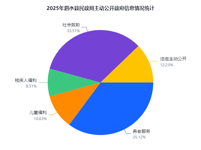2025年,泗水县民政局通过县政府门户网站政府信息公开平台主动公开各类政府信息188条。法定主动公开内容23条,养老服务专题专栏66条,残疾人福利专题专栏16条,儿童福利专题专栏20条,社会救助专题专栏63条。