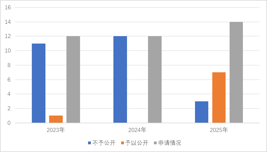 2025年度,泗水县市场监管局收到和处理政府信息公开申请14件,全部为自然人申请,比去年增加2件,政府信息公开均无收费情况。所有申请均依照法规规定在法定期限内予以答复,答复率100%。引起行政复议1件。