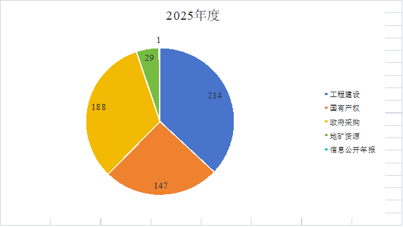 2025年,中心累计主动公开信息579条。其中:1、公共资源配置信息578条,包括“工程建设项目招标投标”信息214条,“国有产权交易”信息147条,“政府采购”信息188条,“地矿资源”信息29条。2、信息公开年报1条。
